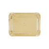 Mida 20x28Cm. Safata fabricada amb cartró blanc gris estriat i capa de polièster metàl.lic or. Amb adhesiu a l’aigua apte per a ús alimentari. Té un gramatge de 717 gr/m2.