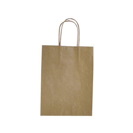 Mida 18x8xH25Cm. Bosses de paper kraft verjurat de 100 grams. Paper interior de color blanc. Nansa arrissada que proporciona major resistència al pes.