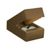 Mida 34×18,5xH9Cm. Caixa de cartró contracolat acabat estil imitació de fusta laminada per a productes engastronòmics diversos o objectes d’exposició. Apte per a 2 ampolles